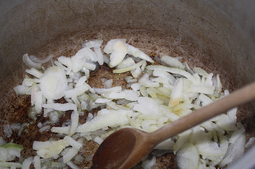 Faire revenir les oignons avec un peu d’huile d’olive dans la cocotte minute