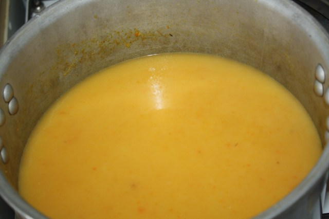 Une fois que les légumes sont cuit, on mixe le tout, et on ajoute la crème.