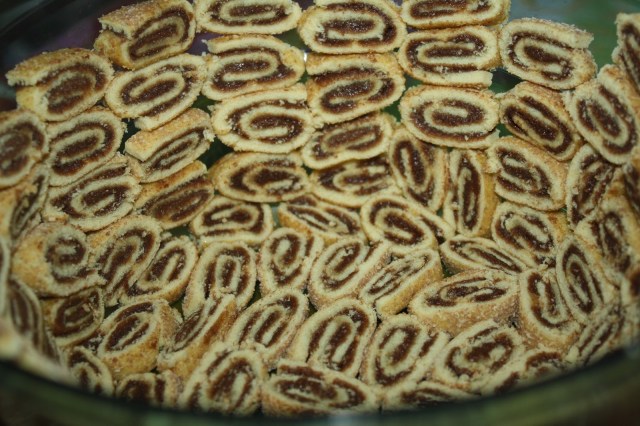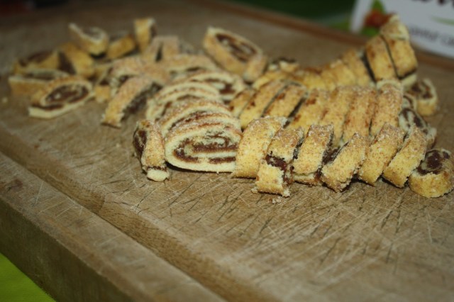 Alors on va commencer par couper les biscuits roulés en petits rondelles.