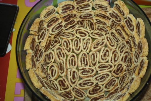 et on le dispose sur les biscuits roulés pour les maintenir.