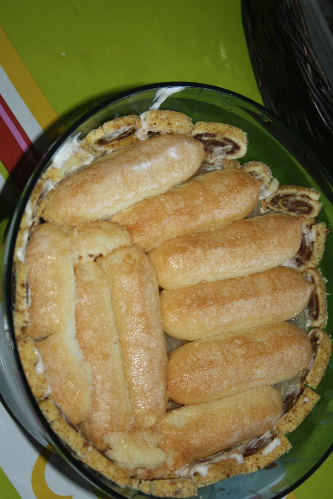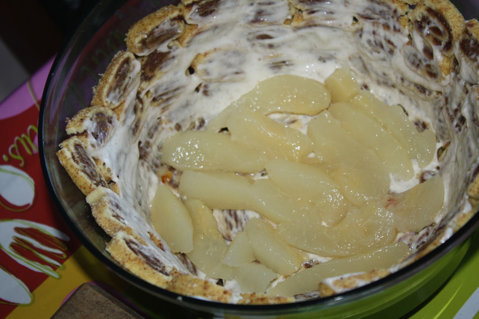 On ajoute les biscuits à la cuillères qu’on trempe dans le sirop de poire