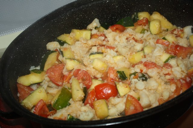 Je vous propose un gratin de légumes (choux fleurs, courgettes et tomates)