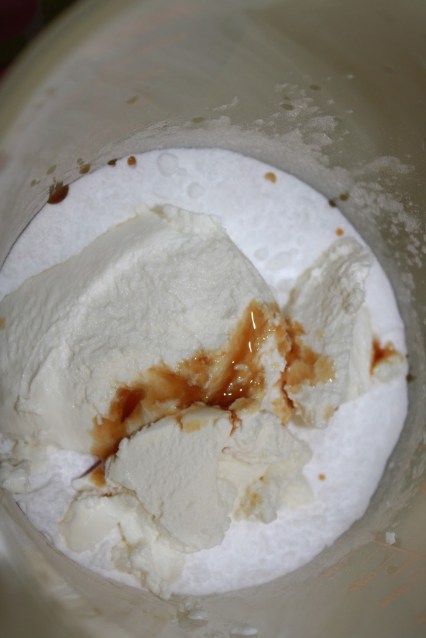 Pour la ganache, il suffit de mélanger la ricotta et le sucre glace et d’y ajouter l’extrait de vanille.