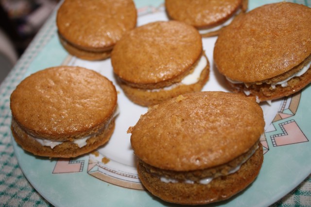 Whoopies, originaire des Etats Unis, drôle de petit gâteau fait de deux ronds de pâte tendre accolés par une crème.