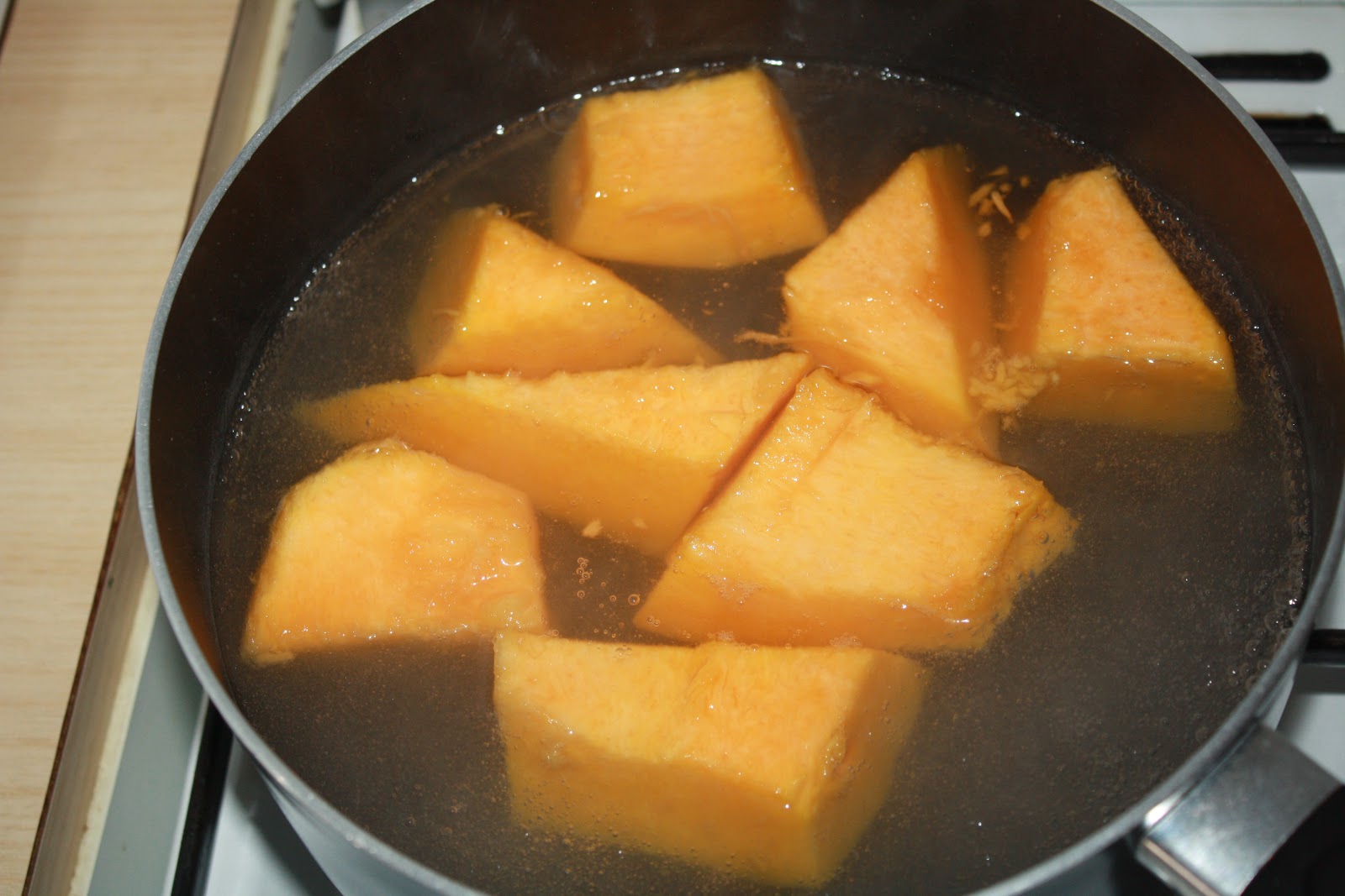 Une fois que les morceaux de potirons sont cuit, les écraser en purée et ajoutons les oeufs