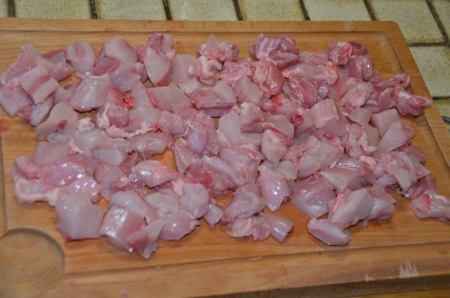 Commençons par couper le lapin en petit morceau et passons le au hachoir.