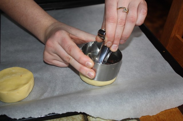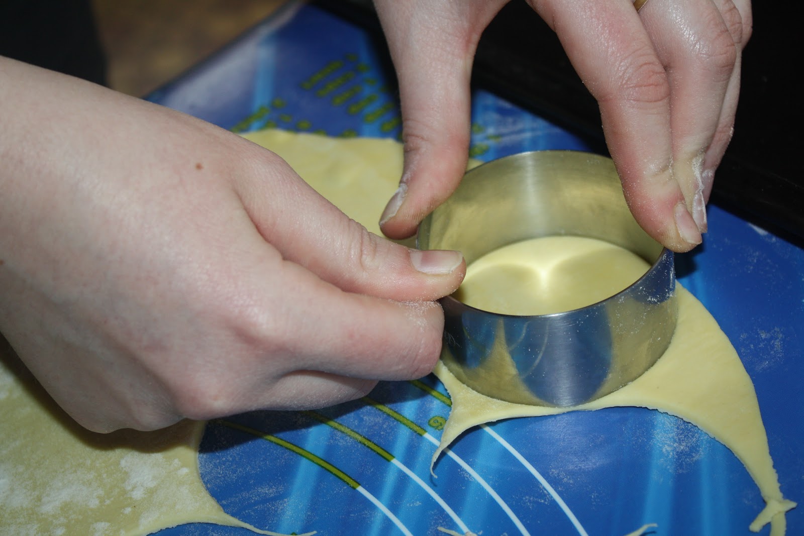 Avec un grand emporte pièce nous découpons des grands ronds, puis des petits.