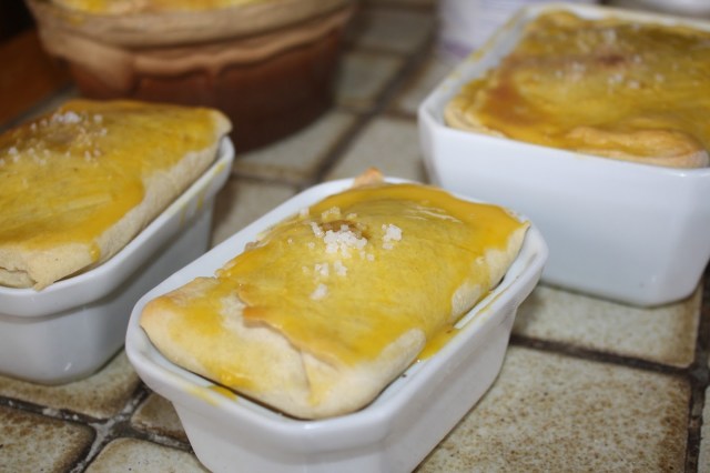 Une fois cuits, on repasse au four pour 10 minutes, après avoir badigeonné d’un mélange de jaune d’œuf et de lait.