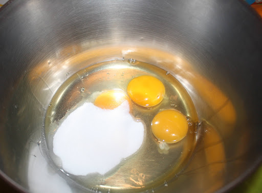 Commençons par mélanger le sucre et les oeufs, jusqu’à ce que le mélange blanchisse.