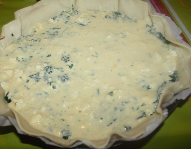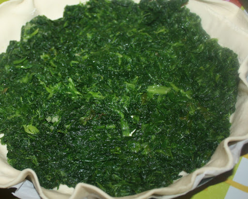 Etalons les épinards sur la pâte, préalablement étalée dans la tourtière.