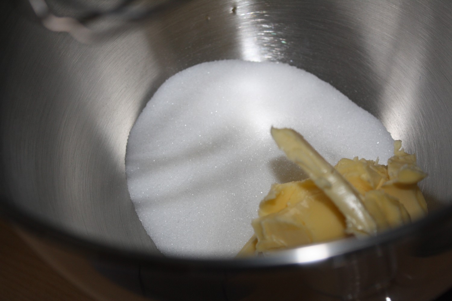 Fouettons ensemble le beurre et l e sucre jusqu’à ce que le mélange s’allège et devienne presque mousseux.