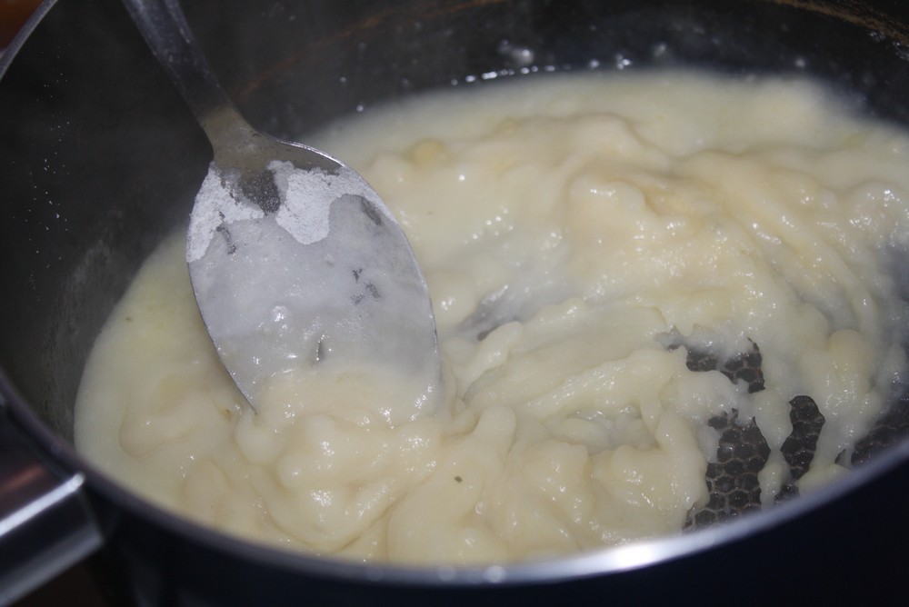 Ensuite, ajoutons la farine au fur et a mesure, jusqu’à ce qu’elle s’épaississe.
