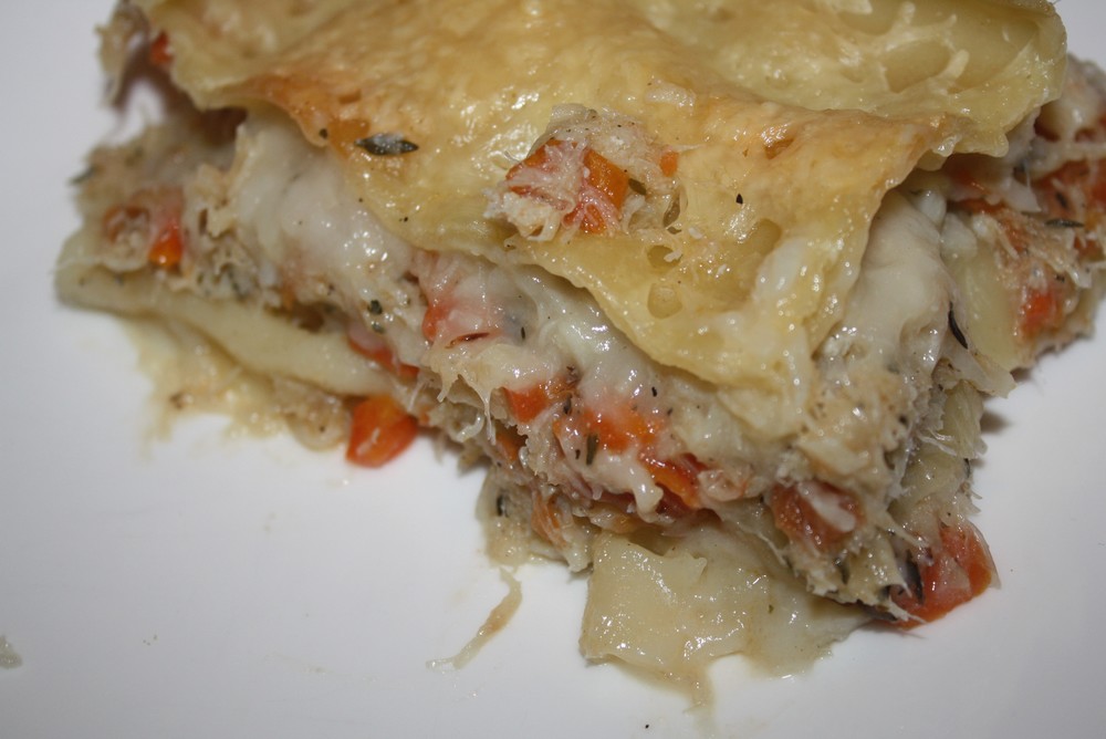 Ce soir, je vous présente les lasagnes de la mer, je cherchais une recette sympa pour me servir du cabillaud, première fois que je réalise des lasagnes aux poissons. Donc un peu en improvisation avec les légumes que j’avais sous la main, mais qui s’accorde à merveille avec ce poisson.