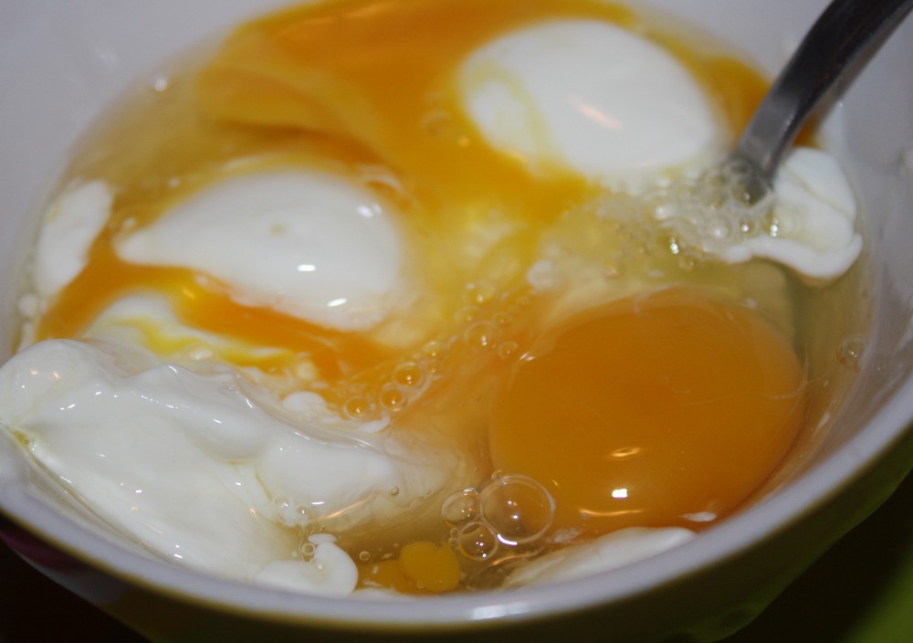 Dans un bol, mélangeons la crème fraîche et les oeufs. Assaisonnons, et recouvrons la préparation de ce mélange.