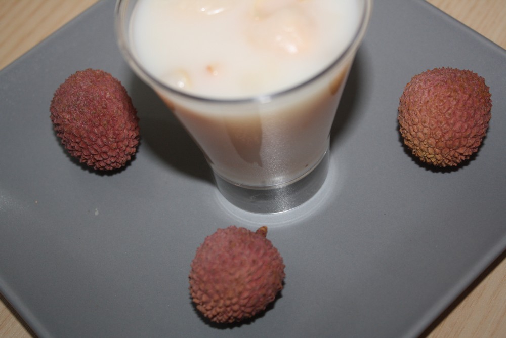 Le litchi, un fruit que j’aime énormément. J’en raffole même.. A la maison, on en achète souvent lors des périodes de fêtes, miam qu’est ce que ça me régale. Bon là, je n’utilise pas des litchis frais (je les garde rien que pour moi les déguster .. hi hi), j’ai utilisé une boite de litchis au sirop qu’il me restait dans le placard.