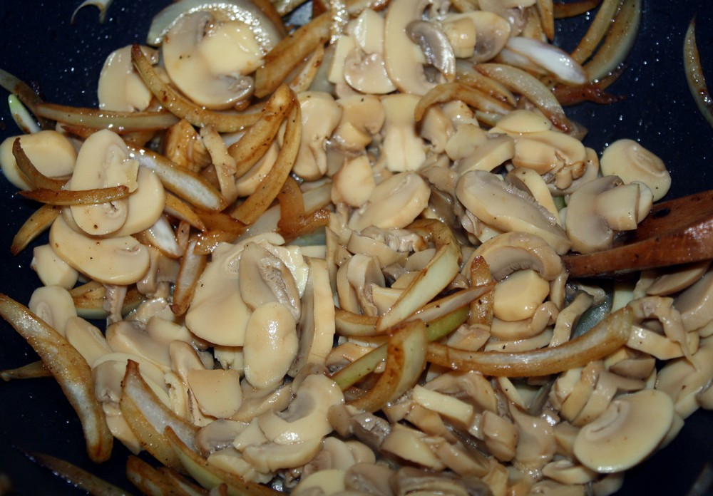 Dans une poêle faisons cuire la viande, dans un peu de beurre, salé, poivré. Une fois cuit, réservons, mais gardons le jus de cuisson.