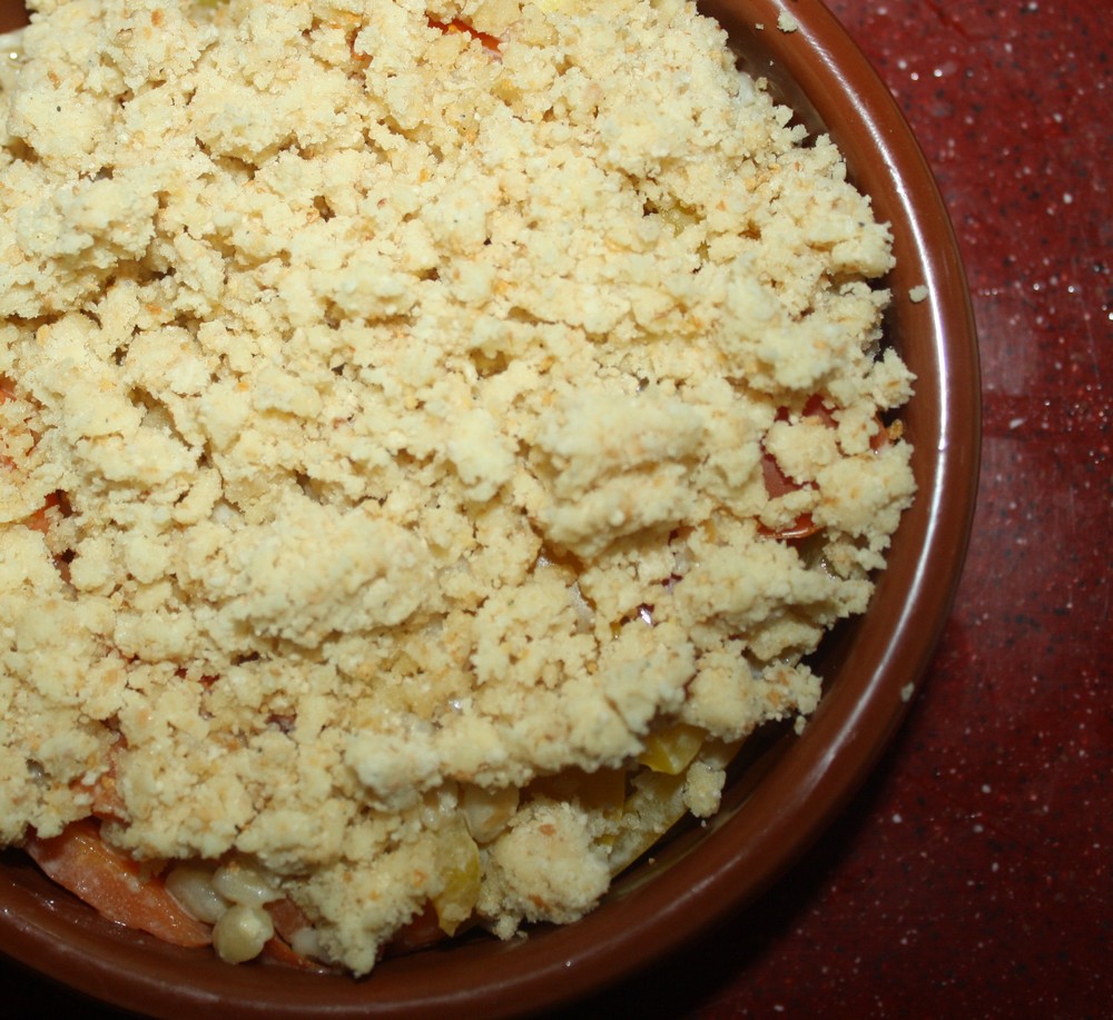 je trouve que les légumes passent toujours plus facilement avec une petite couche de crumble sur le dessus
