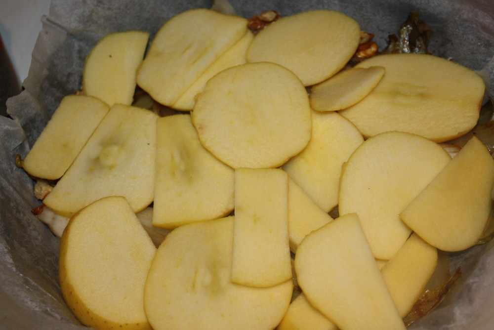 Ajoutons les pommes, préalablement coupés en rondelle.