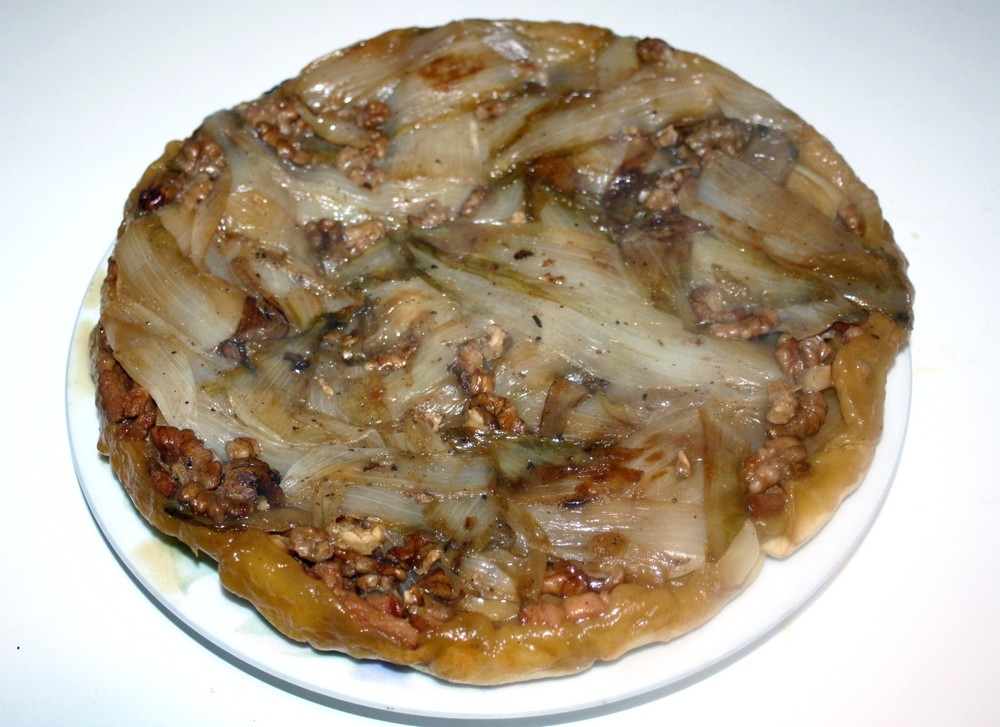 J’aime beaucoup la tatin d’endives, moi je l’avais faite avec des noisettes et du chèvre mais ta version me plaît beaucoup surtout avec les pommes en + !