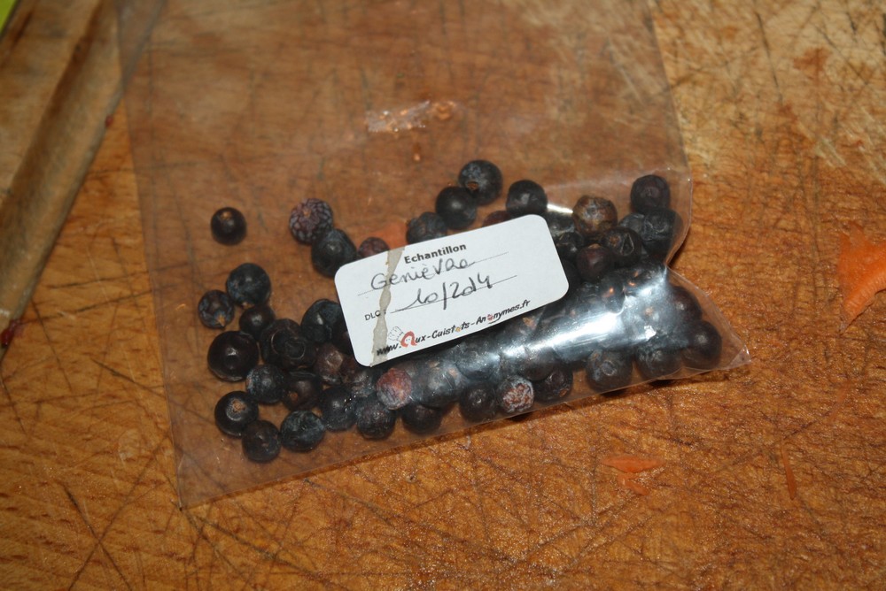 Les baies de genévrier parfument la choucroute et les pâtés, et entrent dans la recette de certains plats de gibier ou viandes grasses, notamment en raison de leurs propriétés digestives. Et bien moi aujourd’hui, je parfume mon boeuf !