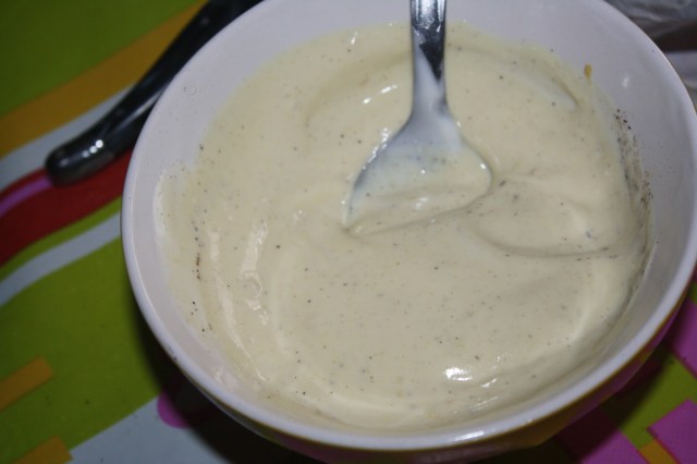 On va mélanger la moutarde et la crème fraiche et on l’assaisonne