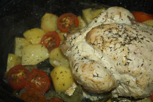 aujourd’hui, premier jour du printemps… mais la pluie et le mauvais temps sont au rdv… grr. Pour se remonter le moral je vous propose un plat facile a réaliser et très goûteux, un vrai délice pleines de saveurs : un poulet et ses pommes de terre et tomate à la provençale. Juste de quoi se régaler. Un plat très conviviale pour les dimanches en famille. J’adore.