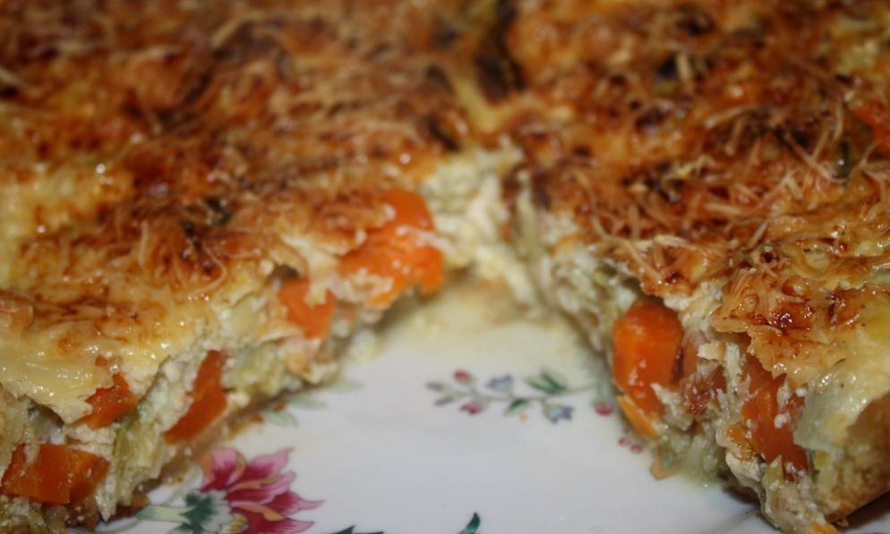 Tarte poulet, poireaux et carottes