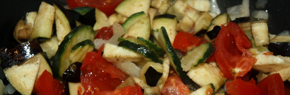 Dans un premier temps,  faisons revenir les oignons dans un peu d’huile d’olive. Ajoutons les légumes préalablement coupés puis laissons mijoter 15 minutes avec un peu de thym et assaisonnons.