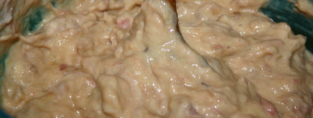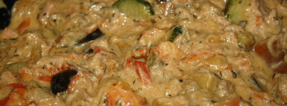 Dans un récipient, mélangeons le thon et la faisselle, les oeufs, sel & poivre. Intégrons la préparation aux légumes