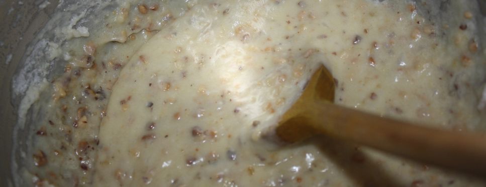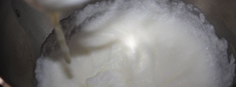 Dans un premier temps, montons les blancs en neige pas trop ferme, le mélange doit être encore un peu mousseux. Incorporons le beurre, la farine, la poudre de praline, le sucre glace et mélangeons à l’aide d’une cuillère en bois.