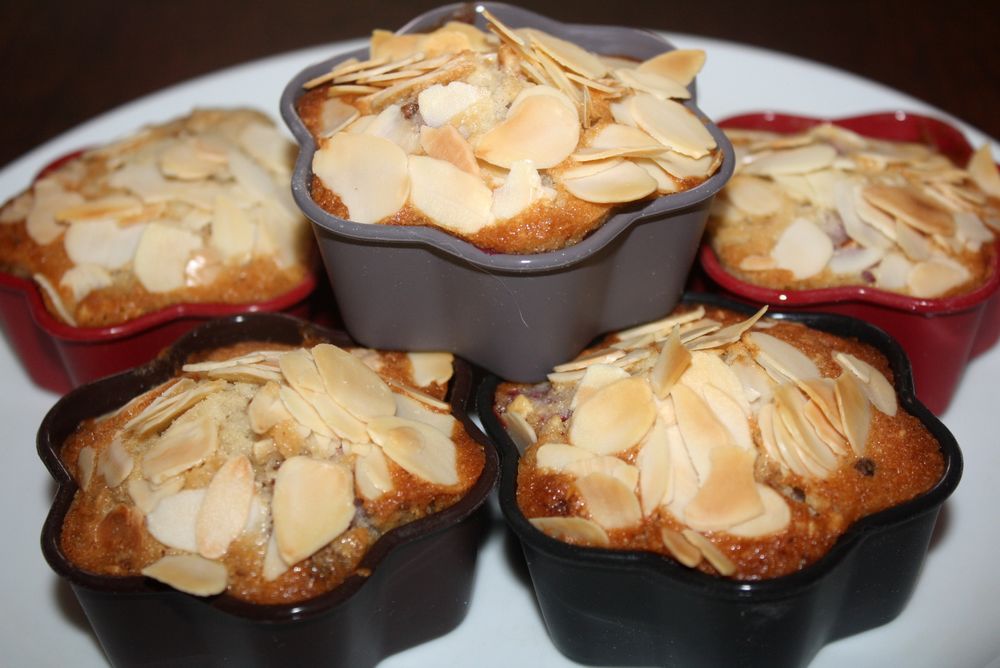Huilons les moules à financier et ajoutons y la préparation et recouvrons d’amandes effilés.  Au four pour 20 minutes à 200°. Les financiers doivent être dorés et quand on y plante la pointe du couteau il doit ressortir sec.