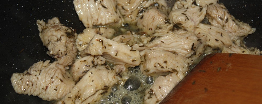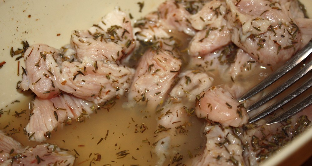 Faisons mariner le poulet coupe en dès dans le citron avec 1 c à c d’herbes de Provence puis assaisonnons la veille (bon moi je l’ai fais 3h avant de cuire).