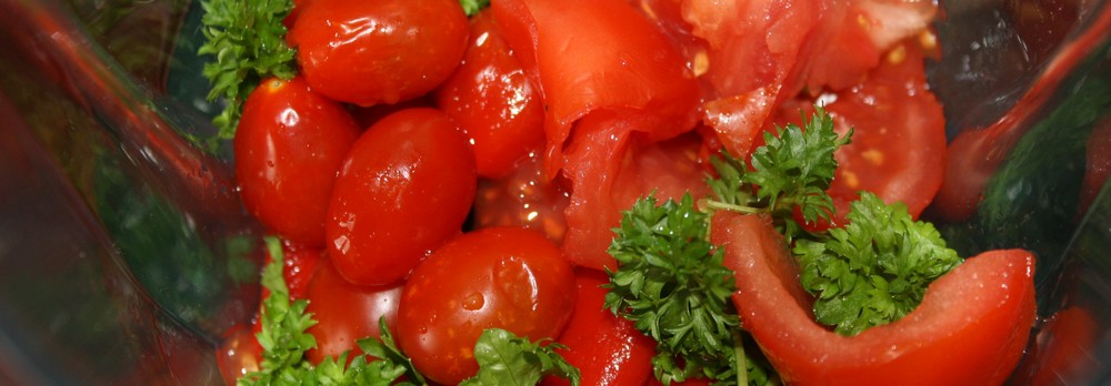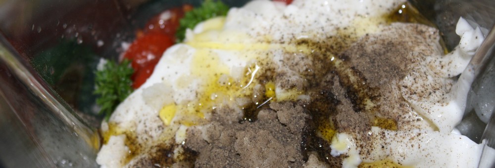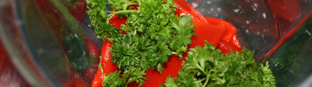 Dans un mixeur, ajoutons les 5 poivrons préalablement égouttés,  ajoutons le persil, tomate, fromage blanc, huile d’olive, gousse d’ail, assaisonnons et mixons le tout. Nous obtenons une belle crème onctueuse.