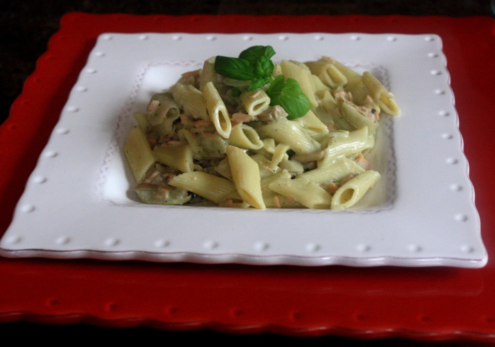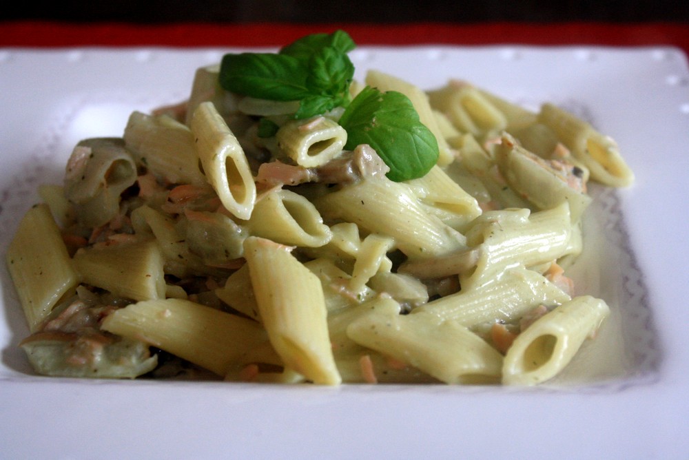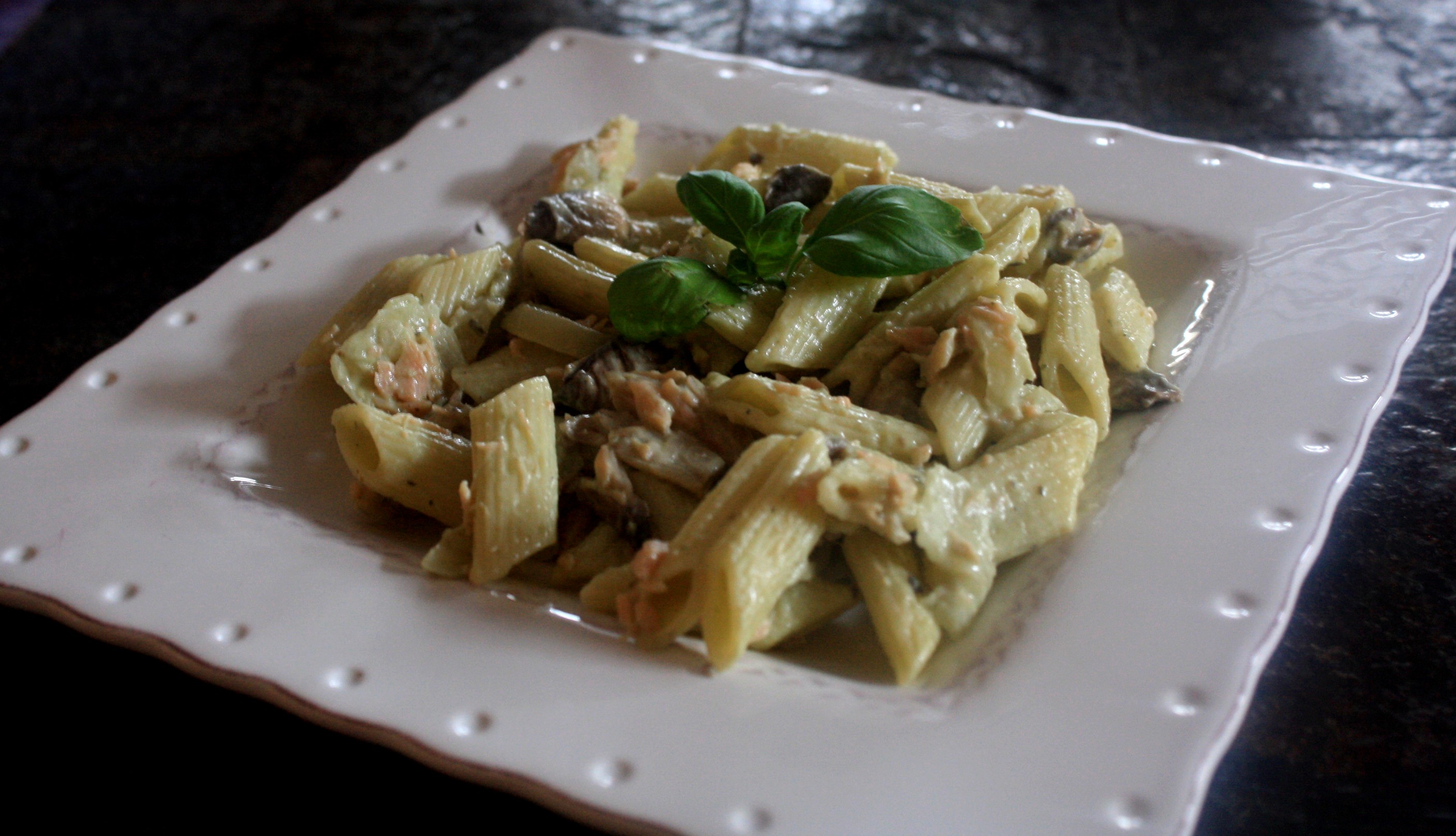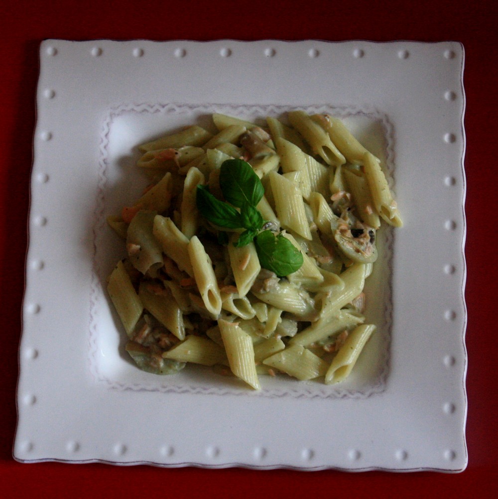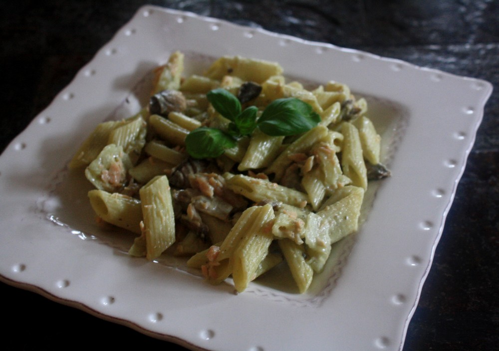 Penne au saumon, crème de basilic
