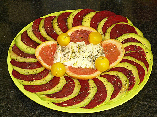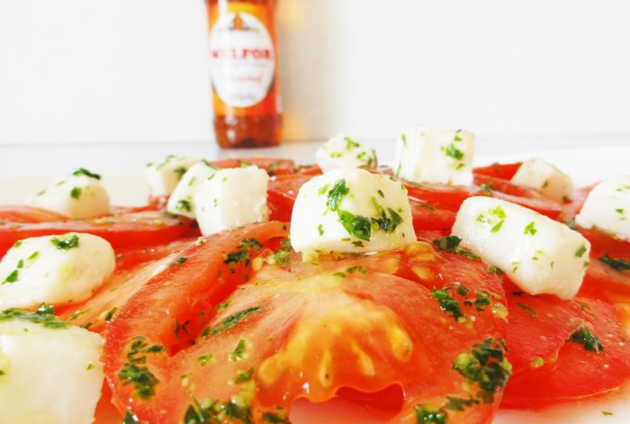 1 ère participation : Manuella de Aux Fourneaux, avec sa salade de tomate et de chèvre.