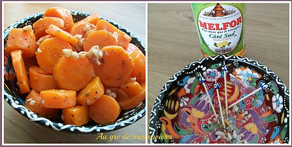 Participation n°8 : d’Annick, du blog Au gré de mes envies, avec ces carottes confites au vinaigre Melfor basilic citron pour l’apéro
