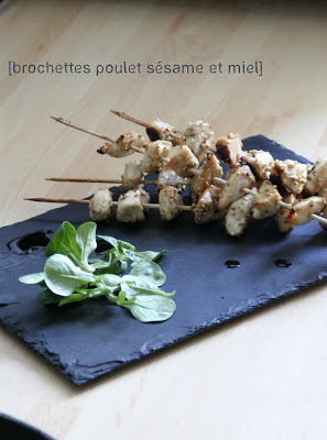 Participation n° 4 : Charlotte du blog  Et Charlotte découuvrit la cuisine avec ces brochettes de poulet au miel et graines de sésame
