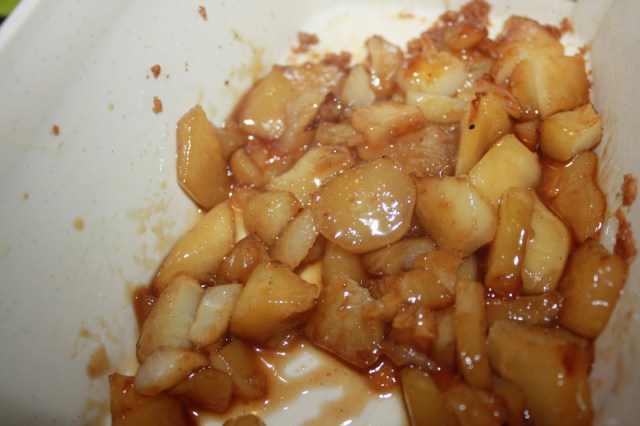 Une fois que les poires sont caramélisées, ajoutons au dessus du biscuit dans les moules individuels.