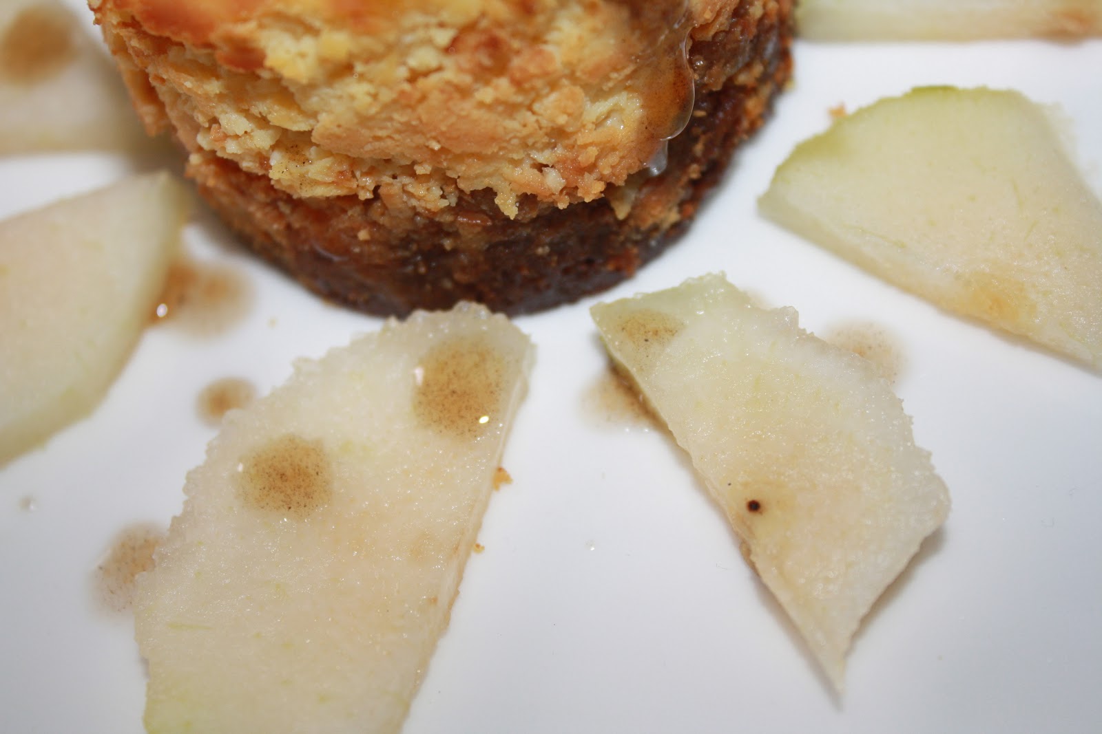 Une fois que les poires sont caramélisées, ajoutons au dessus du biscuit dans les moules individuels.