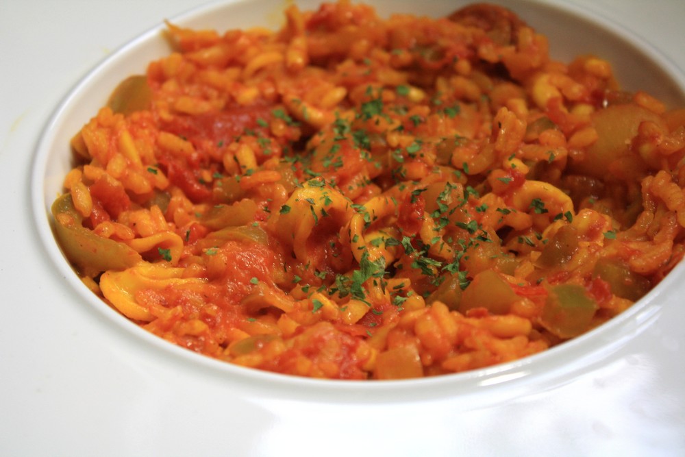 Un risotto qui a les même saveur que la paella en plus rapide et aussi bon. J’ai utilisé uniquement des calamars et du chorizo. Un pur délice à refaire rapidement.