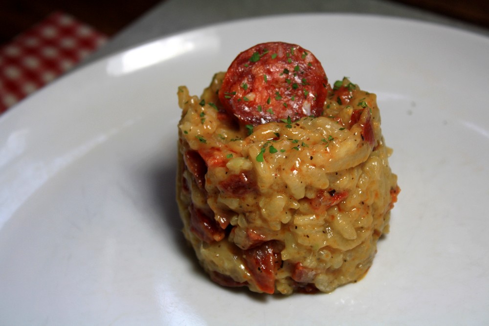 Je suis tombée par hazard sur cette magnifique recette de Cyril LIGNAC. Bon à la base, il utilise des coquillettes, mais moi j’ai utilisé le riz pour ce soir de l’huile d’olive à la place du beurre. Le chorizo donne le caractère au plat, et le parmesan la douceur et le fondant. Une merveilleuse alliance que je re ferais sans hésiter ! Pourquoi pas avec des coquillettes cette fois !