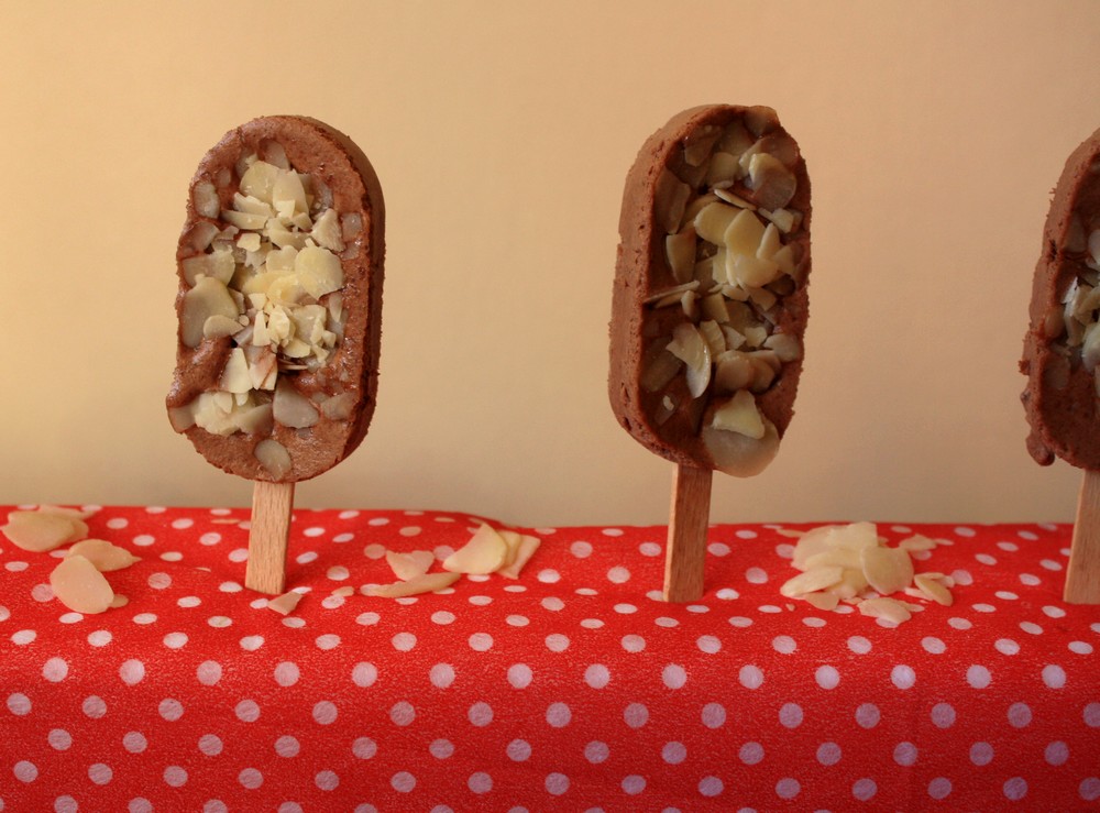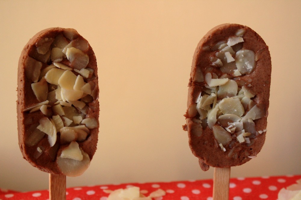 Oh la la ce qu’ils sont beaux tes esquimaux ! Bravo, je suis très tentée, surtout avec tout ce chocolat et ces amandes, huuum !