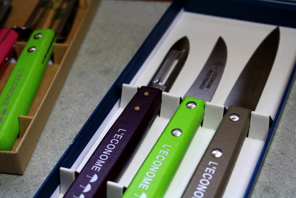 Tous les couteaux et économes sont avec un manche en bois verni et des lames en inox, le tout fabriqué exclusivement en France !