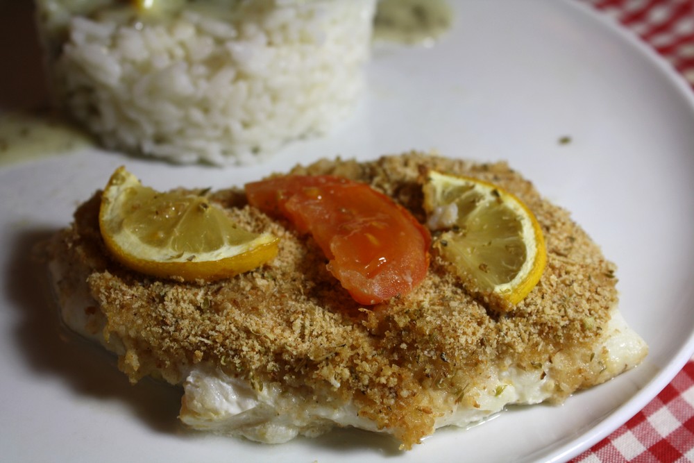 Une recette que j’avais déjà essayé, mais nous nous étions tellement régalé qu’il a fallu que j’en cuisine à nouveau. Par contre, j’y ai ajouté de la poudre d’amandes et de l’origan ! Donc nous avons là, un filet de cabillaud recouvert de chapelure, d‘origan, de parmesan et de poudre d’amandes. Une vraie merveille !
