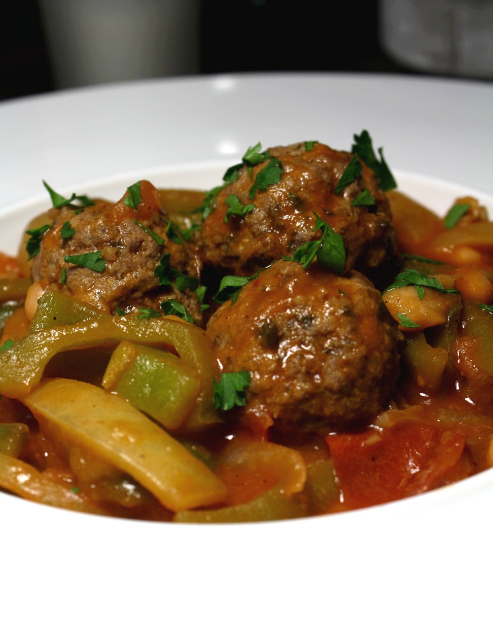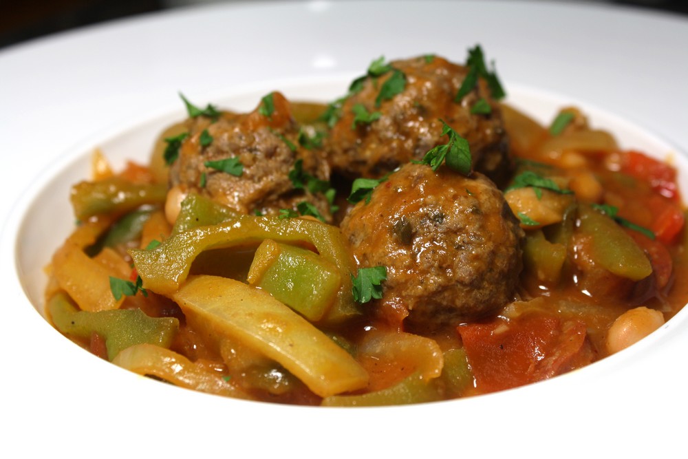 Vous connaissez les recettes faites petit à petit ? En cours de cuisson, vous y ajoutez des ingrédients. Voilà ce qui vient de m’arriver ce soir. Je suis partie sur la base de ma copine Reyhan du merveilleux blog le Clan des Gourmands, qui propose une recette d’haricots à la viande hachés. Sa recette m’a tout de suite mis l’eau à la bouche ! J’y ai ajouté des poivrons, des tomates puis j’ai réalisé des boulettes de boeuf épicés au cumin, coriandre, paprika, ciboulette, ail, et pour finir, j’y ai ajouté du chorizo ! Une alliance parfaite croyez moi. Pour le titre, j’ai eu beaucoup de mal à me décider..