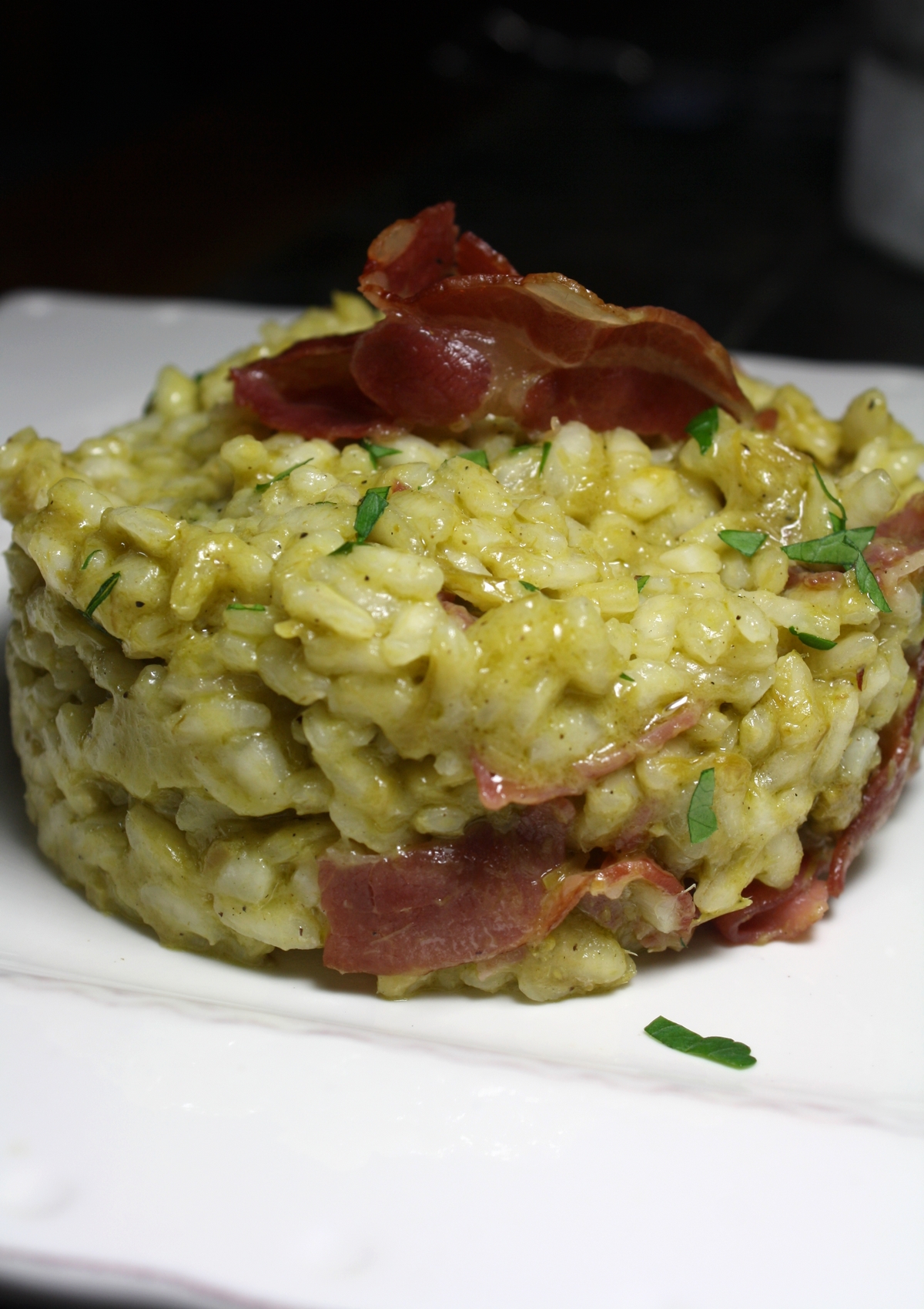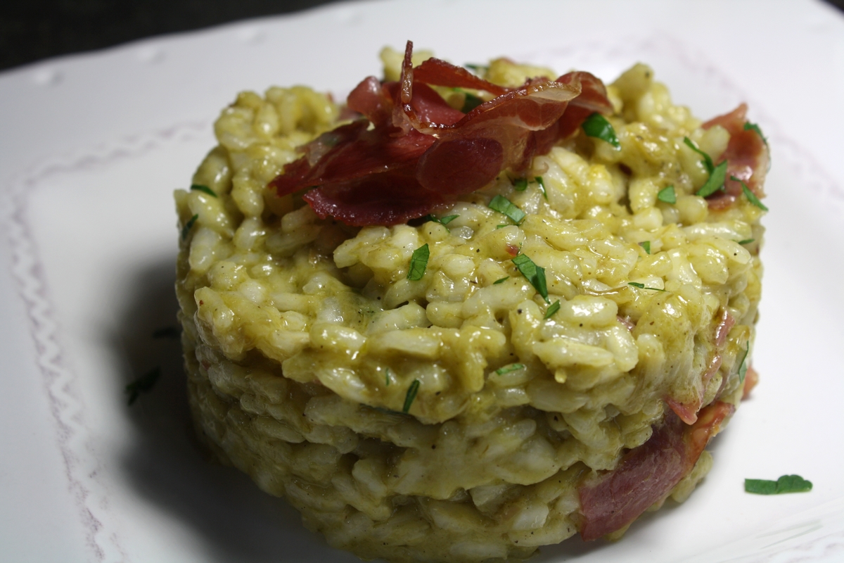 Risotto asperges Verte & coppa à l’huile de truffe