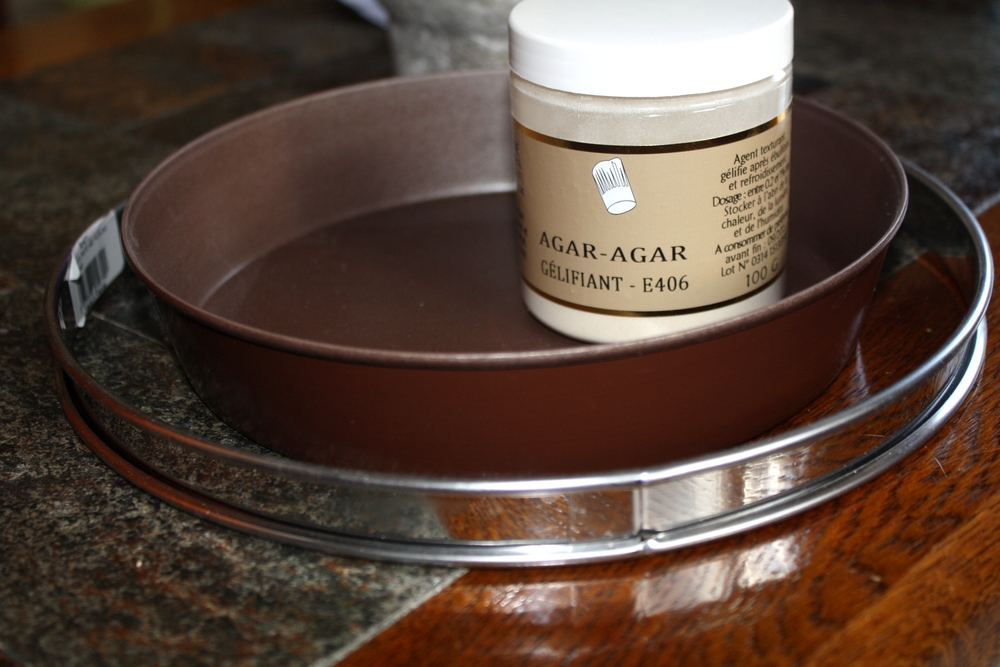 - de l’agar agar : Il est utilisé dans la confection de mousses, pana cotta…Gélifiant d’origine naturelle (gélatine végétale). Très facile d’utilisation : Disperser la poudre d’agar agar dans la préparation, puis porter le mélange à ébullition. En refroidissant le mélange se solidifiera.