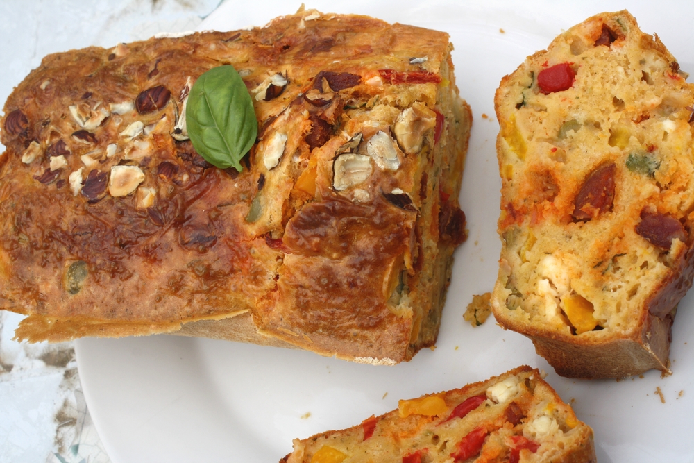 Cake salé chorizo, poivrons, feta & basilic