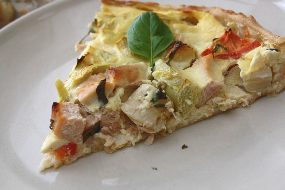 c’est une belle tarte avec de beaux légumes et le saumon la rend encore plus savoureuse.