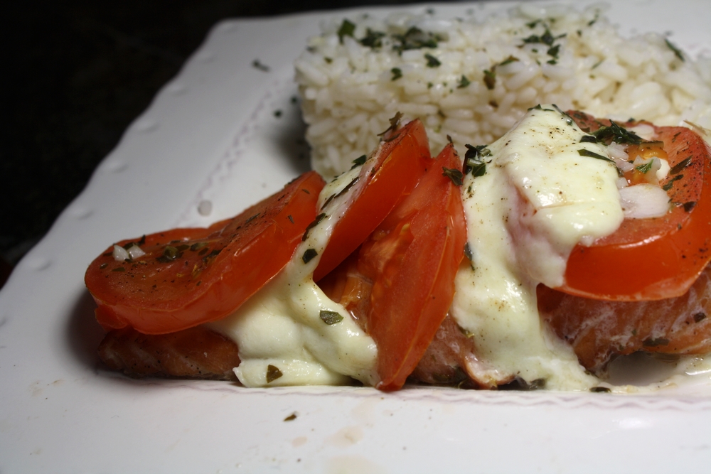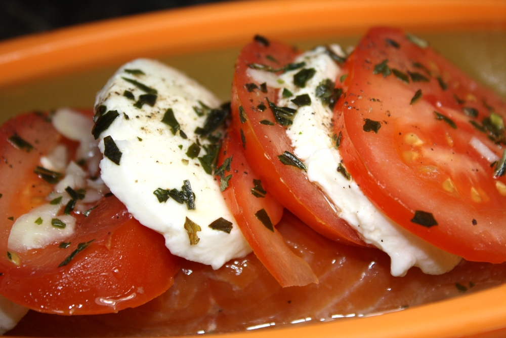 Revenons à notre recette : saumon, mozzarella, tomates, un peu de basilic, de vin de blanc de citron et une pointe d’huile d’olive au basilic & un peu d’ail ! Un régal !